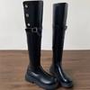 Зимние женские сапоги выше колена, модные женские элегантные ботильоны без шнуровки на низком каблуке, длинные ботильоны с пряжкой на ремне, женские рыцарские ботильоны