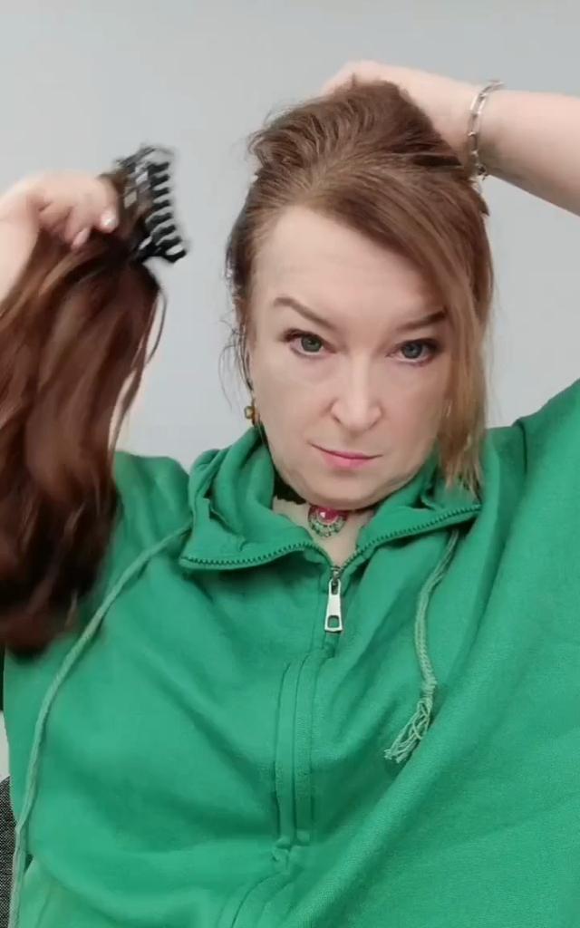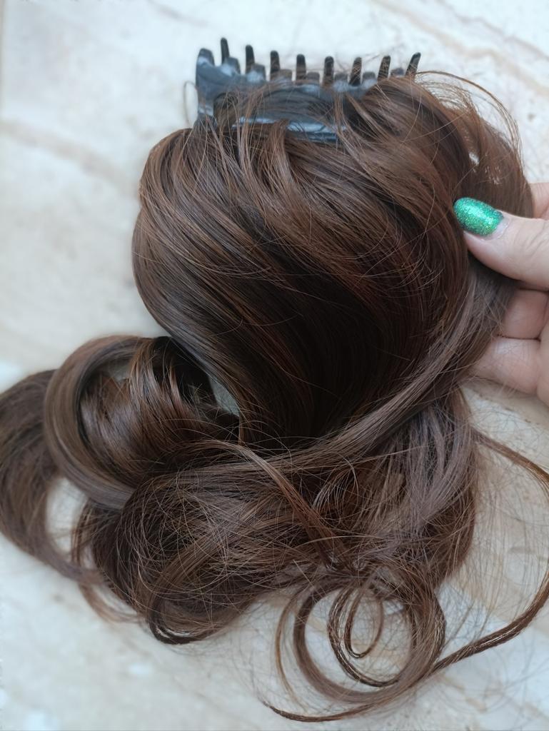 Классный хвостик! Это прекрасно, что сейчас научились делать волосы, неотличимые от настоящих! Крепится на заколку-краб, это очень удобно. Делаете гулю, или хвостик из своих волос, и поверх крепите. Заказывала цвет 3-30. Сначала думала, что не подойдёт, цвет темнее, чем у моих. Но у меня цвет неоднородный, с переходами, так что в итоге, мне кажется, хорошо. Во всяком случае, носить буду! Хвост натурально смотрится как с моими тонкими волосами, так и с более толстыми и густыми волосами подруги. У нее они темнее, и ещё больше попали в тон.
