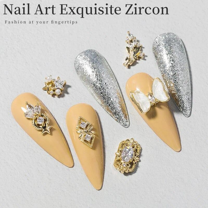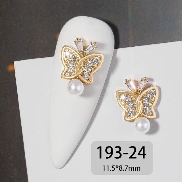 2 шт. в партии подвесная цепочка 3D сплав бабочка дизайн ногтей циркон жемчуг металлические маникюрные ногти DIY аксессуары украшения ногтей