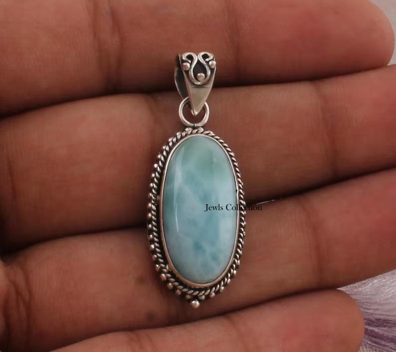 Подвеска из натурального камня Ларимар, дизайнерская подвеска ручной работы в стиле бохо, рождественские украшения, подвеска Рейки, серебро 925 пробы — купить товар онлайн с бесплатной доставкой по всему миру!