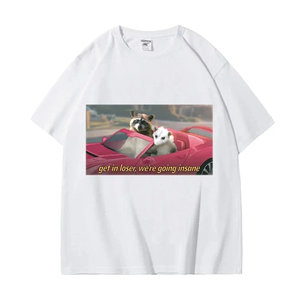 Повседневная футболка из 100% хлопка Get In Loser We're Going Insane, футболка с принтом енота и опоссума, женские футболки унисекс с короткими рукавами