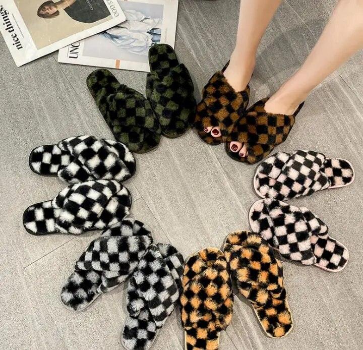 Осень-зима, женская верхняя одежда, сандалии на плоской подошве, домашние теплые пушистые тапочки, удобные пледовые тапочки с мехом кролика и крестиком — купить товар онлайн с бесплатной доставкой по всему миру!