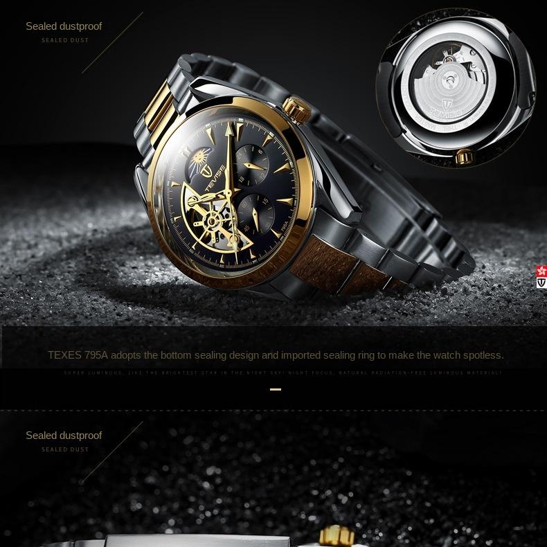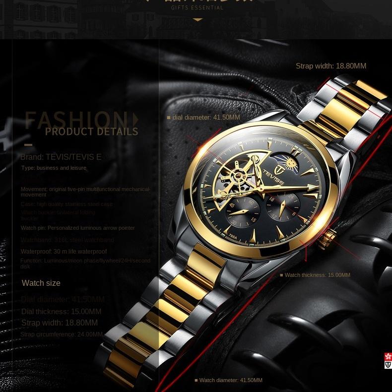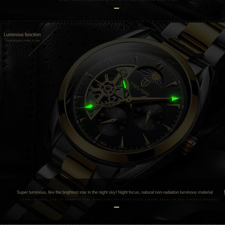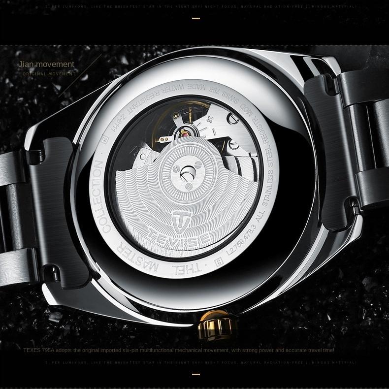 TEVISE Watch Мужские полностью автоматические механические часы Lunar Phase со стальным ремешком