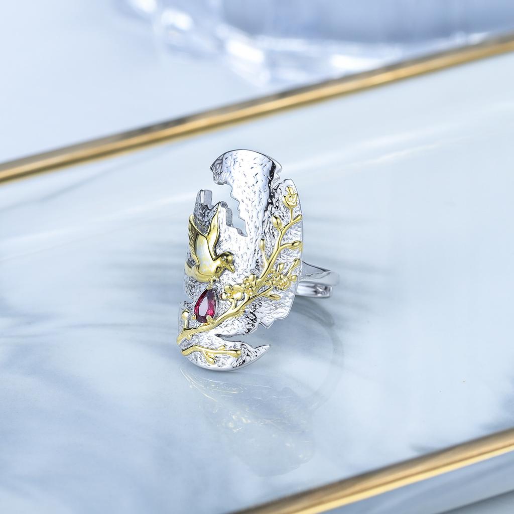 Оригинальное дизайнерское кольцо из стерлингового серебра 925 пробы с позолотой, нишевое дизайнерское кольцо, кольцо с натуральным диопсидом и хризопразом