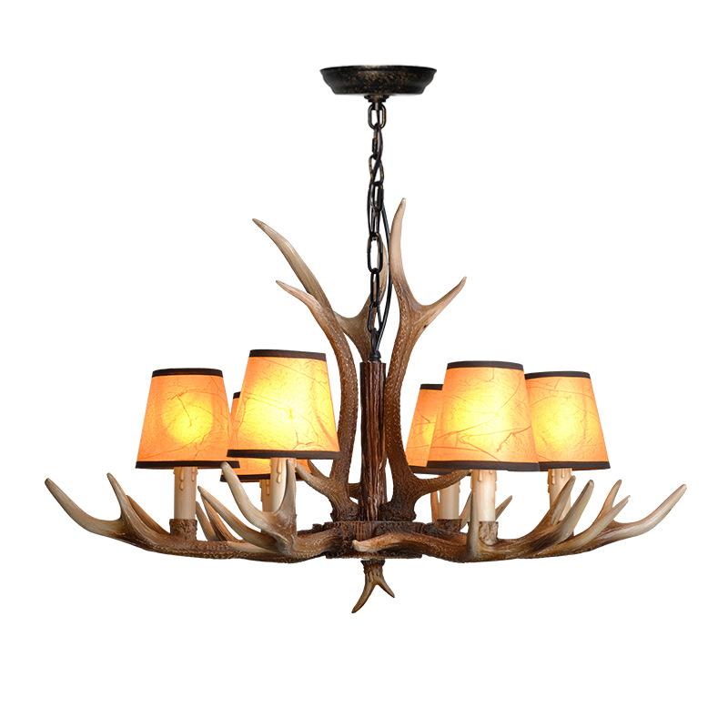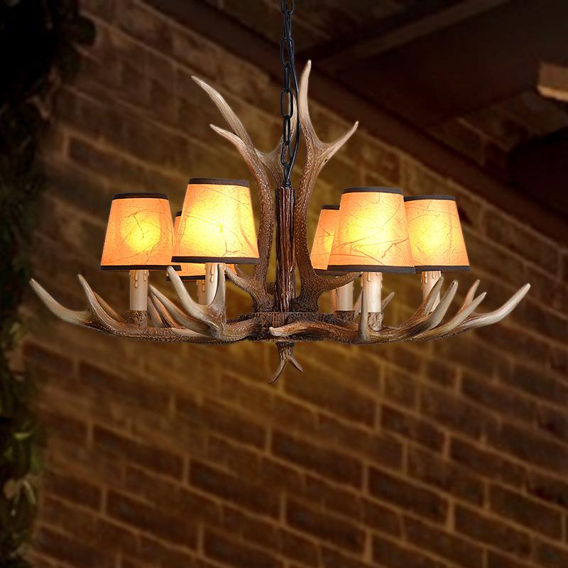 Домашняя смоляная люстра с рогами, античный цветной абажур, теплый ресторан, гостиная, декоративные лампы и фонари с рогами