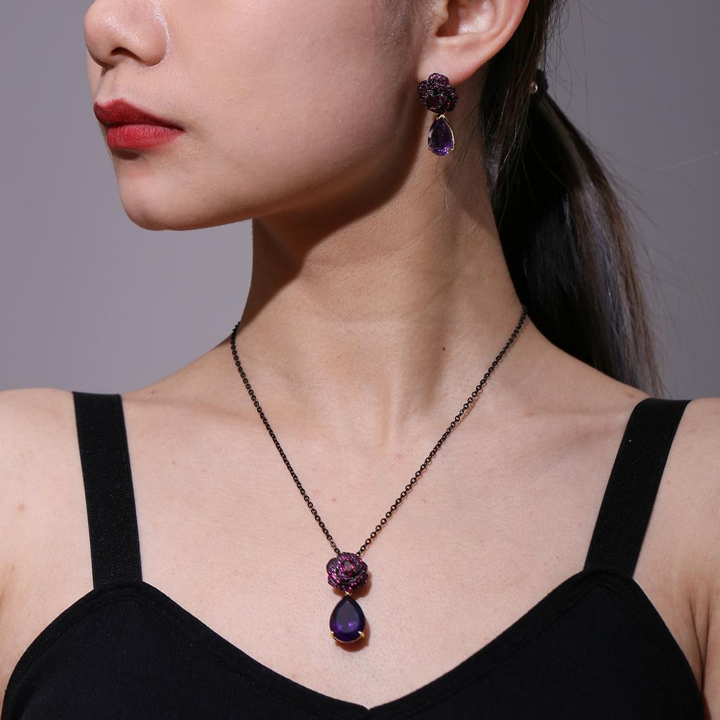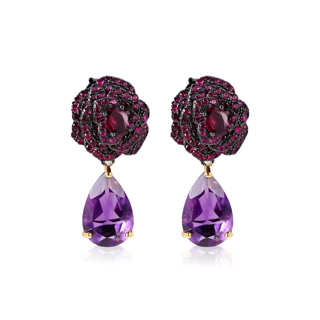 S925 Серебряные серьги с розами, темпераментные легкие роскошные серьги, серьги с натуральным аметистом и слезами розы, новый стиль