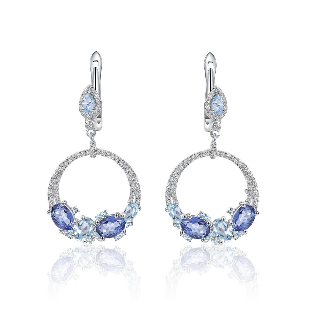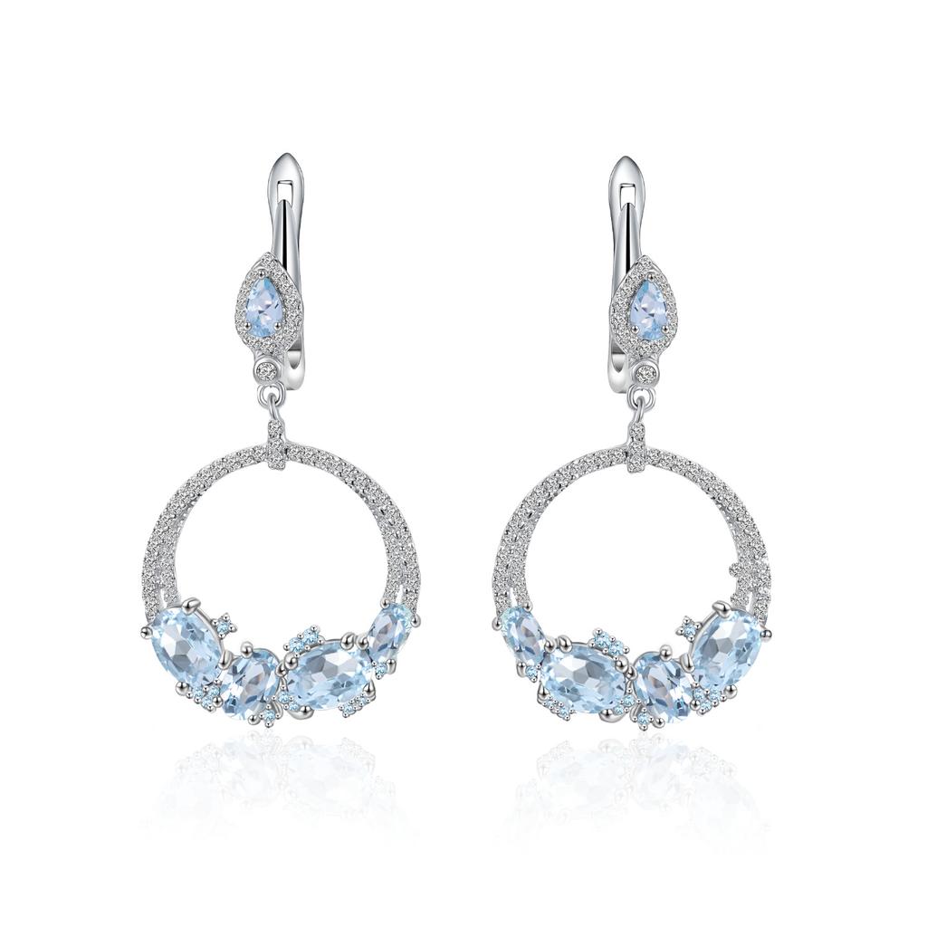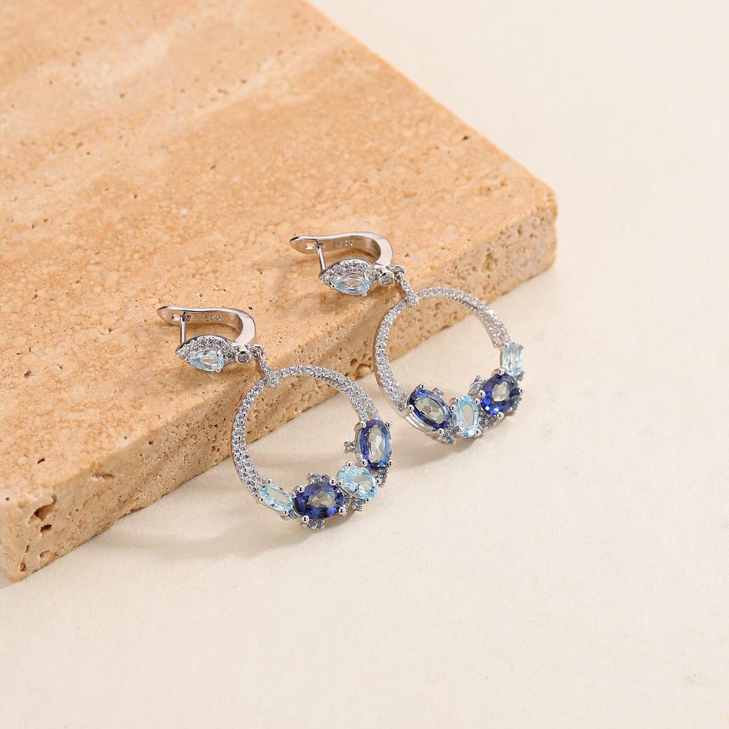 Серьги-кольца в европейском и американском стиле в стиле интернет-знаменитостей, серьги с натуральным топазом, серьги из стерлингового серебра S925 с драгоценными камнями