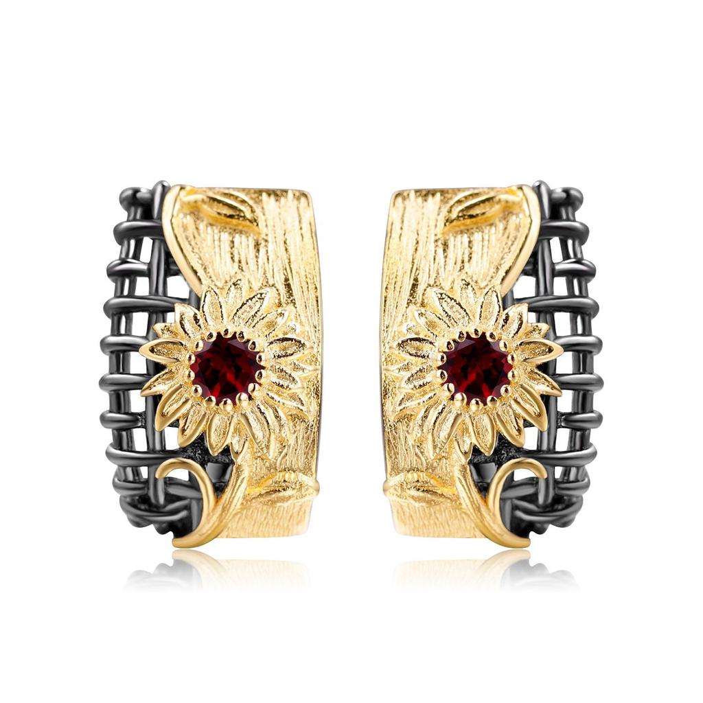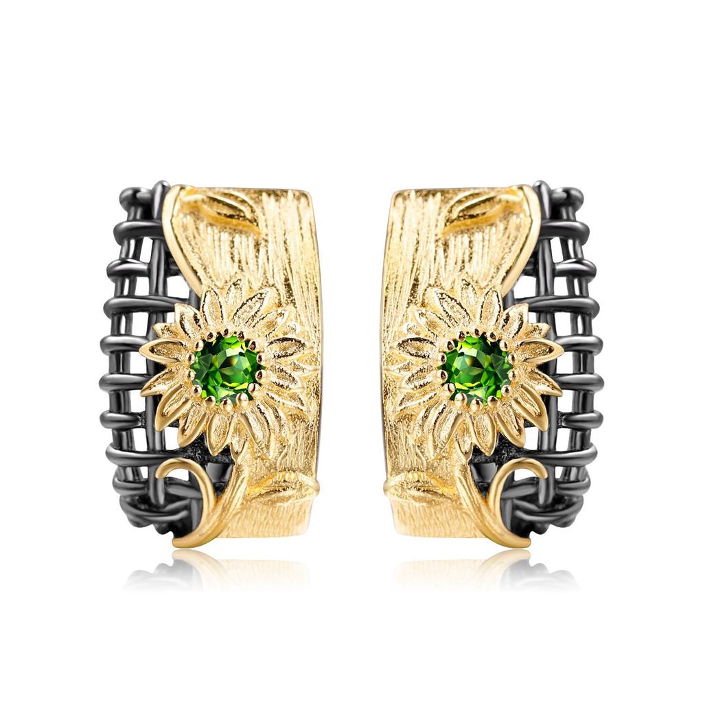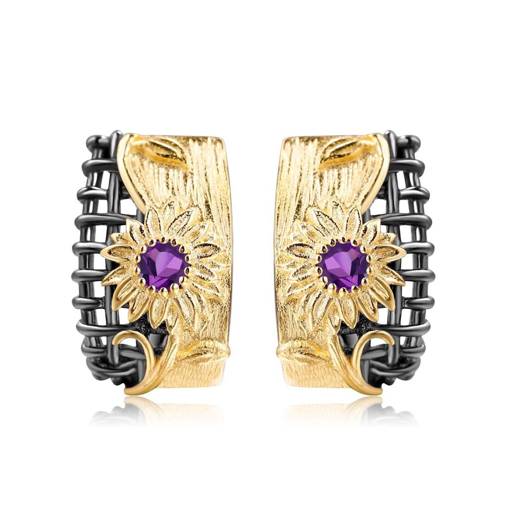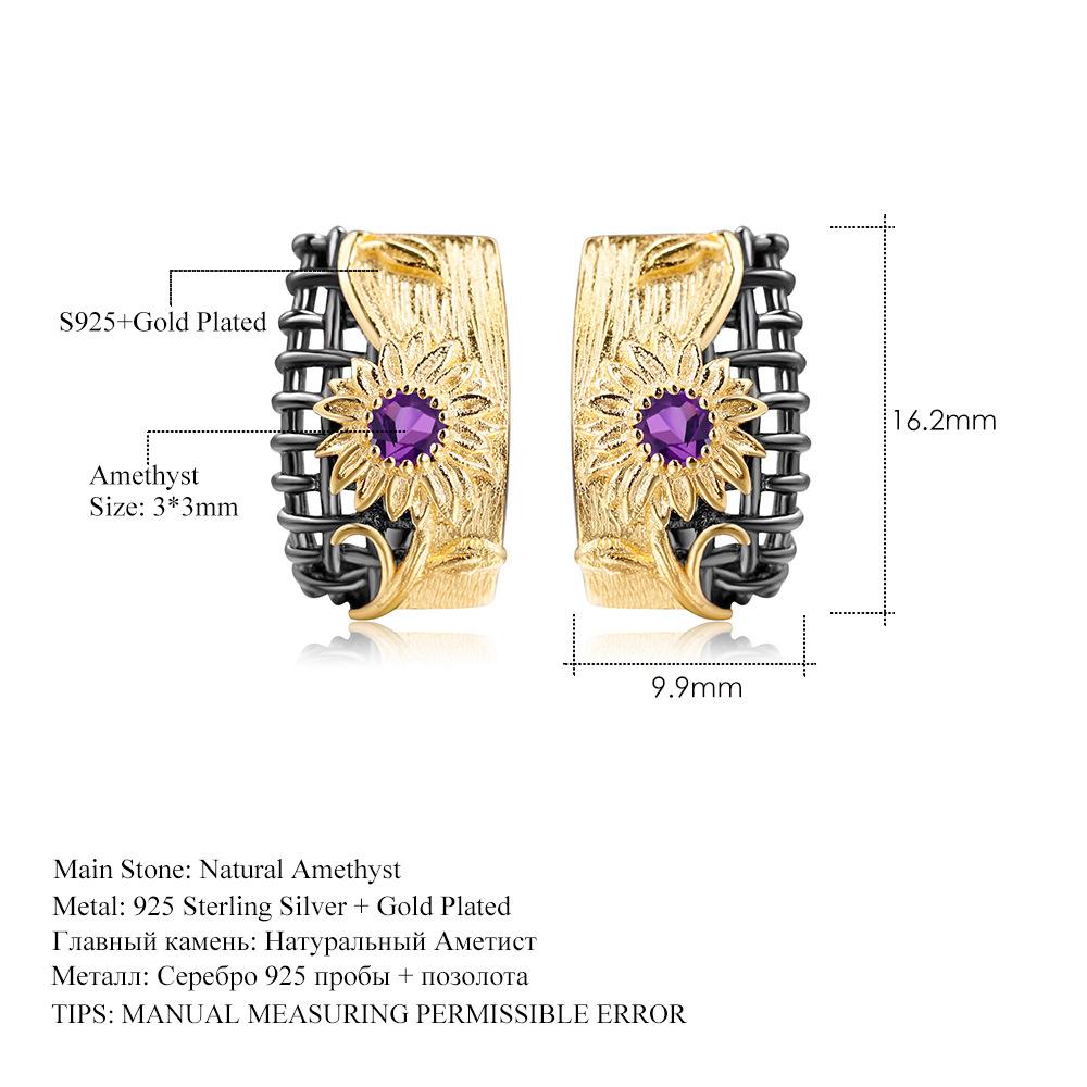 Оригинальные дизайнерские серьги в естественном стиле с цветочным дизайном, серьги-гвоздики из серебра 925 пробы с натуральным аметистом
