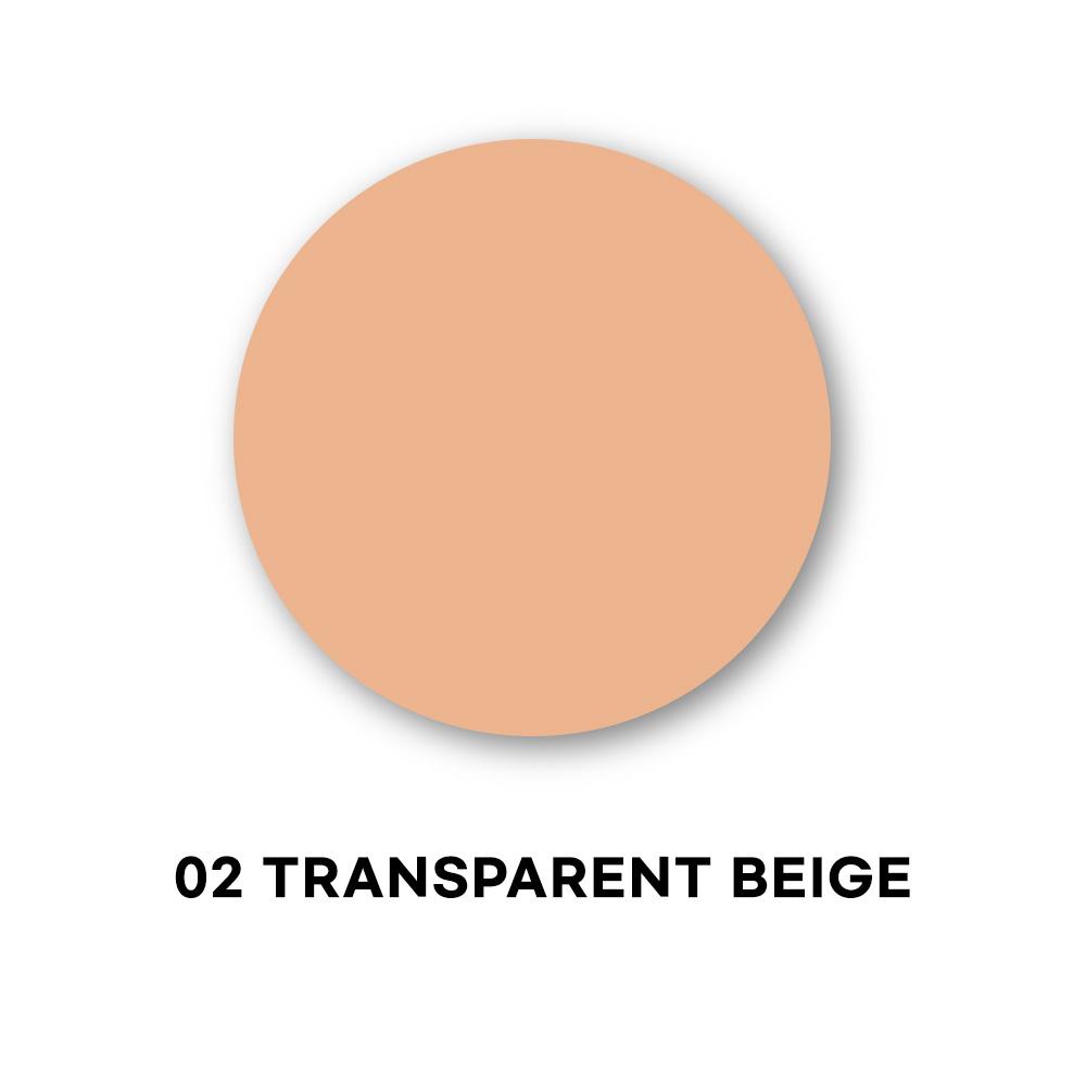 02 Прозрачный бежевый: Прозрачный бежевый цвет, который позволяет выразить прозрачный оттенок кожи и естественное покрытие.