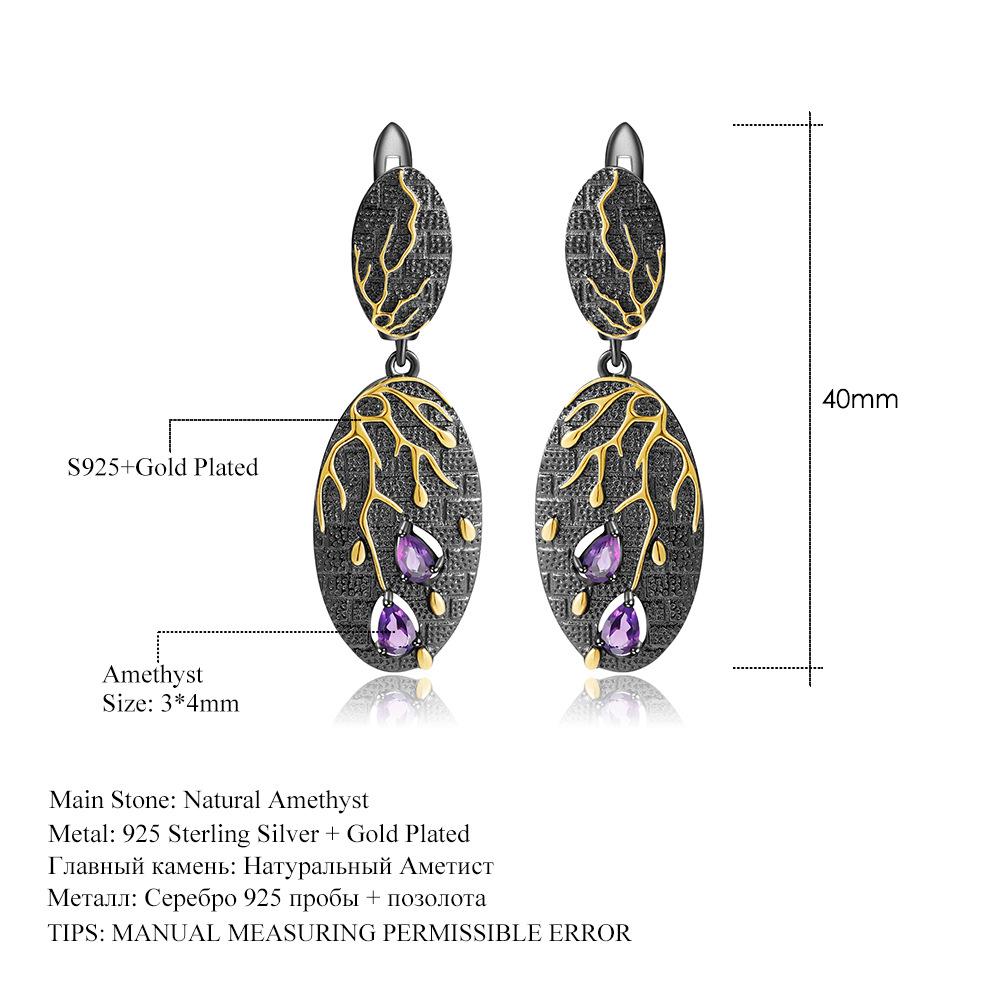 Оригинальные дизайнерские серьги, серьги-гвоздики из высококачественного серебра 925 пробы с натуральным аметистом. — купить товар онлайн с бесплатной доставкой по всему миру!