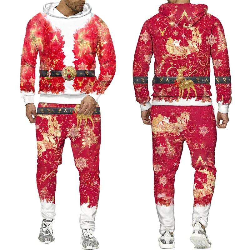 Новые мужские/женские забавные худи/брюки/костюм с 3D принтом Санта-Клауса, спортивный костюм, модные наряды для пар, мужские спортивные костюмы для рождественской вечеринки