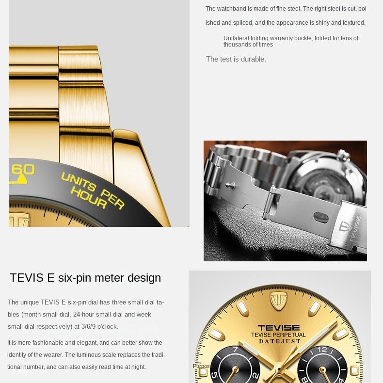 TEVISE Светящиеся мужские механические часы Модные деловые многофункциональные механические часы Мужские часы