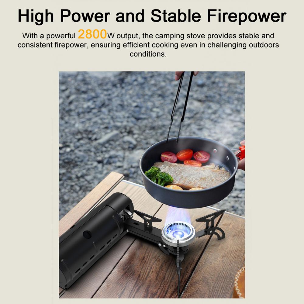 Высокая мощность и стабильная огневая мощь: Походная печь мощностью 2800 Вт обеспечивает стабильную и постоянную огневую мощь, обеспечивая эффективное приготовление пищи даже в сложных условиях на открытом воздухе.