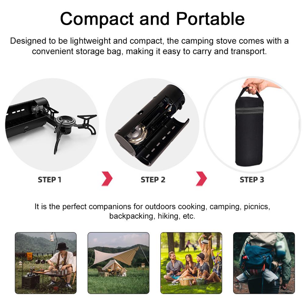 Компактный и портативный: Легкая и компактная походная печь поставляется с удобной сумкой для хранения, что упрощает ее переноску и транспортировку.. Это идеальный компаньон для приготовления пищи на открытом воздухе, кемпинга, пикников, пеших прогулок, пеших прогулок и т. д.