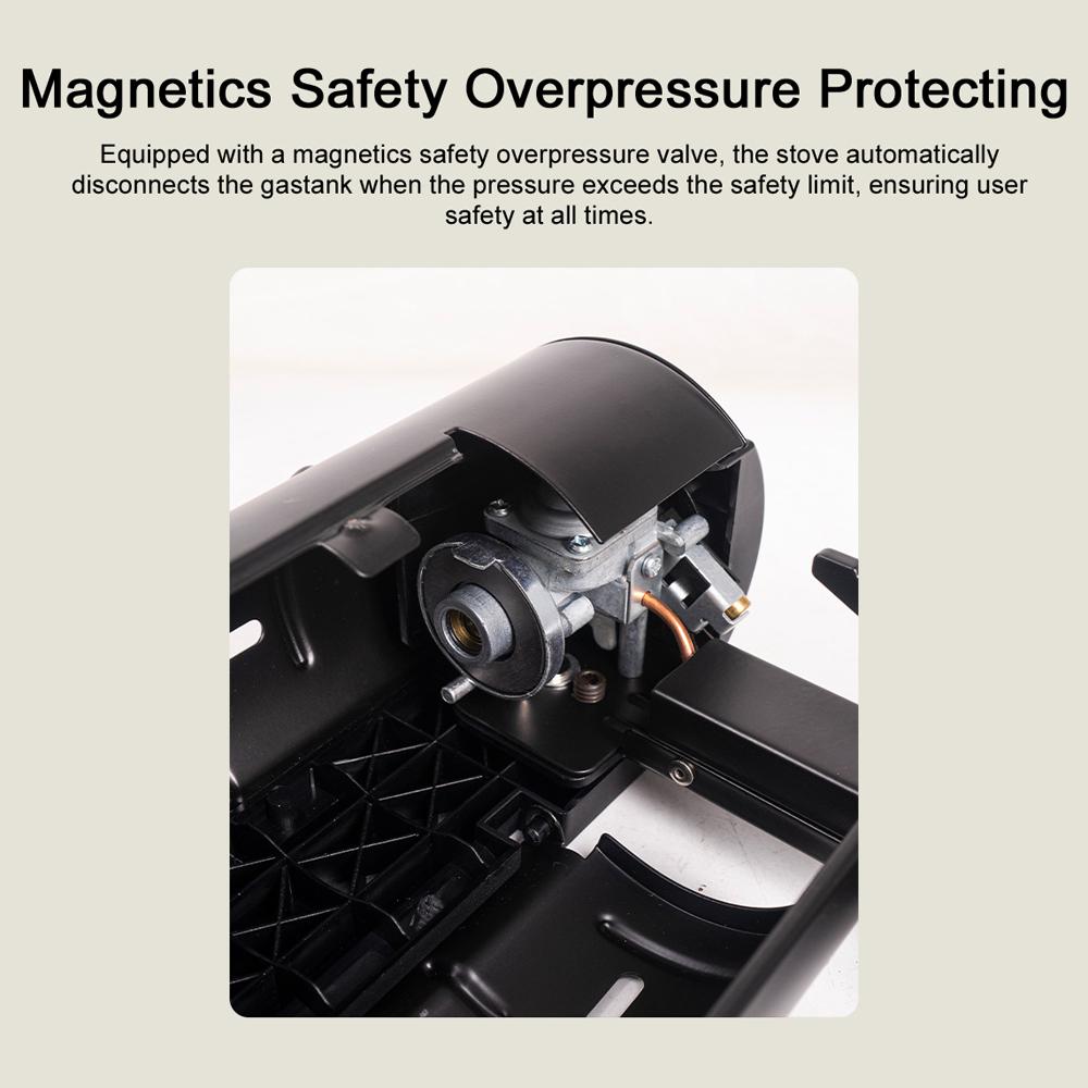 Магнитная безопасность Защита от избыточного давления: Оборудованная магнитным предохранительным клапаном избыточного давления, печь автоматически отключает газовый баллон, когда давление превышает безопасный предел, обеспечивая постоянную безопасность пользователя.