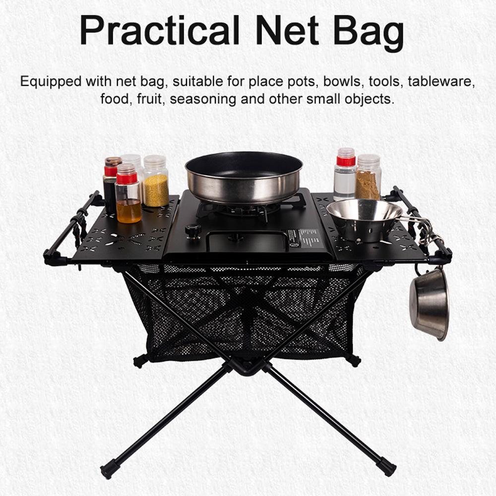 Практичная сетчатая сумка: Оснащен сетчатой сумкой, подходящей для размещения кастрюль, мисок, инструментов, посуды, продуктов питания, фруктов, приправ и других мелких предметов.