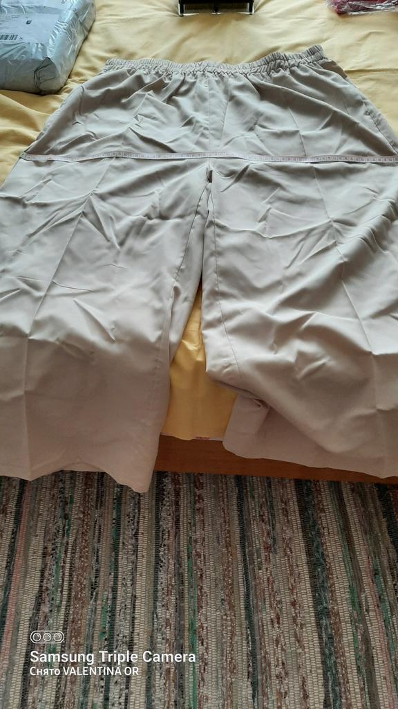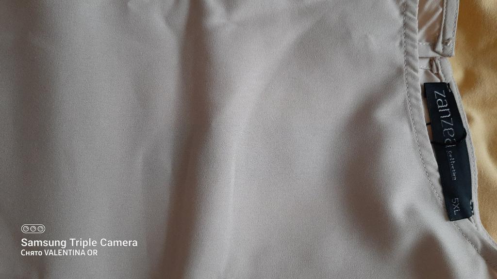 Пошив качественный и цвет красивый. Ткань тонкая .Костюм нужно доводить до своих размеров. Обычно мне подходит 5XL или 4XL. У продавца в описании ог 128, от 94, ОБ 137 ( самом деле даже 140 см) . Вообщем огромные штаны, внизу ширина штанины 39×2= 78см. Верх блуза ог 128 соответствует, но руки с трудом входят в рукава 21 ×2=42 см. У кого руки, предплечие больше Вам не подойдет этот костюм. Да еще и тратиться нести брюки ушивать. А блузу уже ничем не исправишь брала из-за блузы, она мне понравилась...1209 руб на ветер. Брюки большемерят, блуза маломерит.