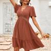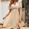 Досуг весна-лето женское однотонное платье с рукавами в виде листьев лотоса и v-образным вырезом