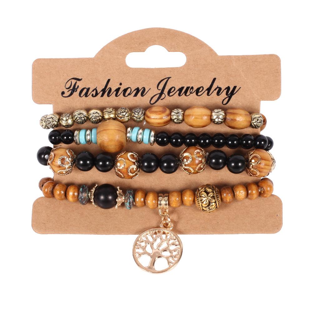 1 компл./упак. Европейский и американский модный национальный стиль, богемный стиль, комбинированный многослойный браслет ручной работы с деревянными бусинами