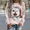 Женский свитер с круглым вырезом с милым котенком, осень 2023, новый женский топ, повседневный удобный свитер увеличенного размера