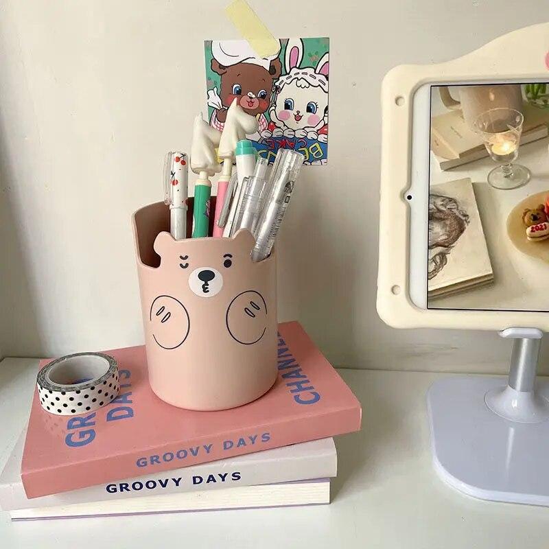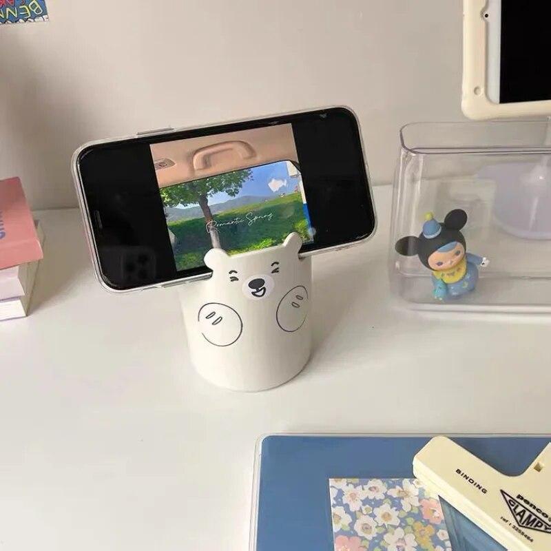 Многофункциональный держатель для ручек, кавайный мультяшный медведь, держатель для кистей для макияжа, милый модный держатель для телефона, студенческий канцелярский органайзер для ручек