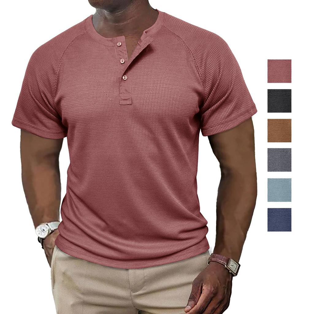 Мужские рубашки на пуговицах, вафельные футболки с короткими рукавами и круглым вырезом, летние пуловеры, повседневная праздничная повседневная одежда