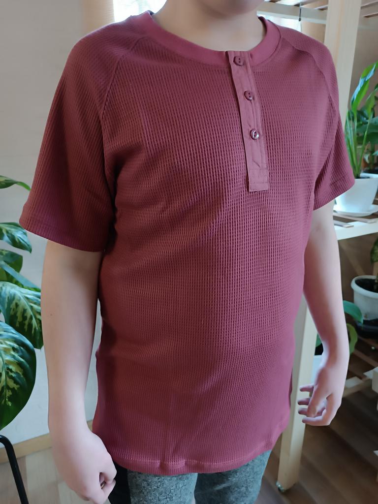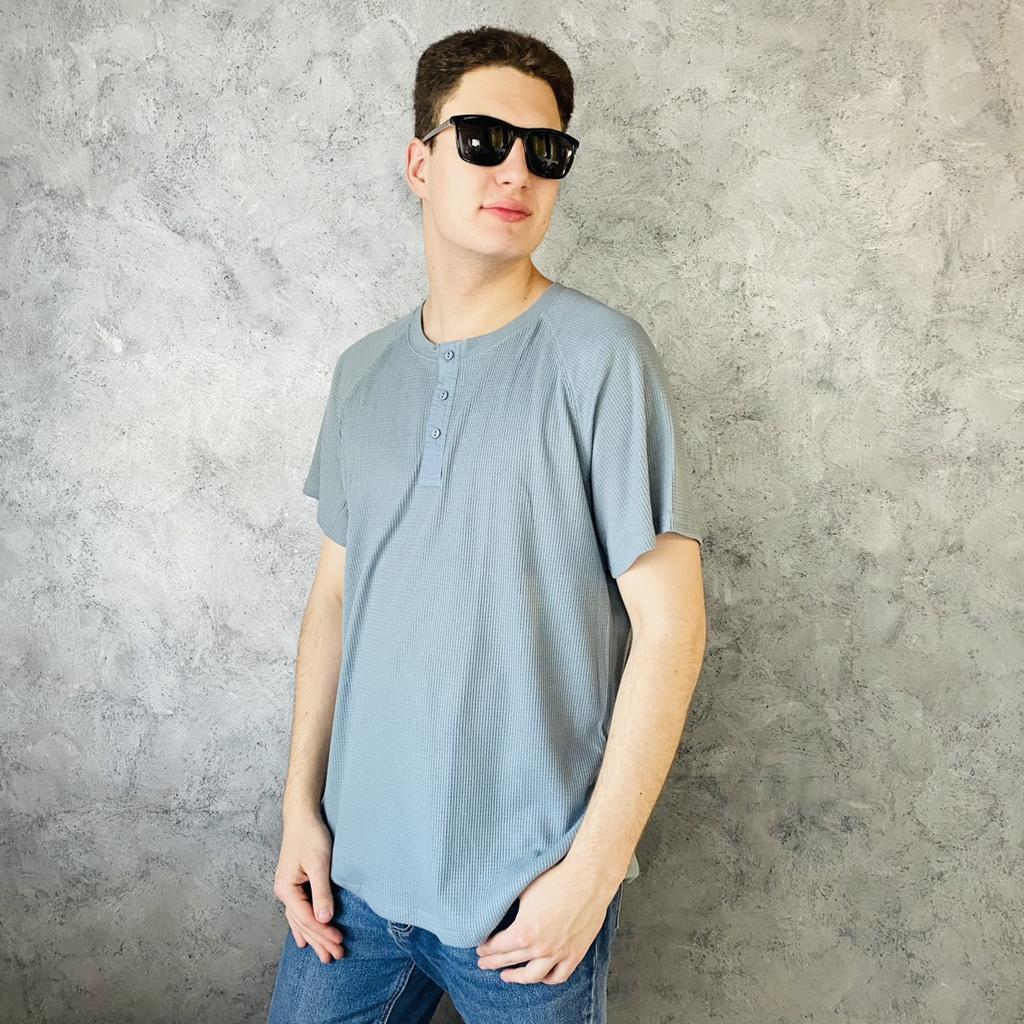 ФУТБОЛКА на пуговках🤗🤗🤗 Кто ищет стильную вещь обратите внимание! Доставка до Екб три недели с живым треком. Упаковка в фирменный зип пакет, вещь однозначно фабричная и довольно занятная. Футболка из вафельного материала смотрится здорово! Фасон самый классический. Материал легкий- дышащий. На фото вещь после стирки!!! Размер выбрали XL. На рост 186 см и вес 80 кг футболка села Оверсайз. Рекомендую ее на размер 48-52. Качество шикарное. Пуговки серо- голубые в тон футболки. Вещица отличная и красивая. К покупке рекомендую, носить будем с удовольствием!