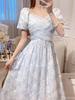 Новое летнее элегантное платье с короткими рукавами во французском стиле в стиле ретро. Элегантное длинное платье с пышными рукавами и принтом высокого класса.