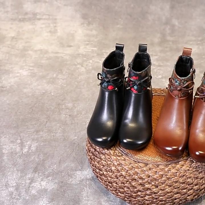 Johnature/зимние теплые полусапоги, непромокаемая женская обувь из натуральной кожи в этническом стиле на толстом каблуке и мягкой подошве — купить товар онлайн с бесплатной доставкой по всему миру!