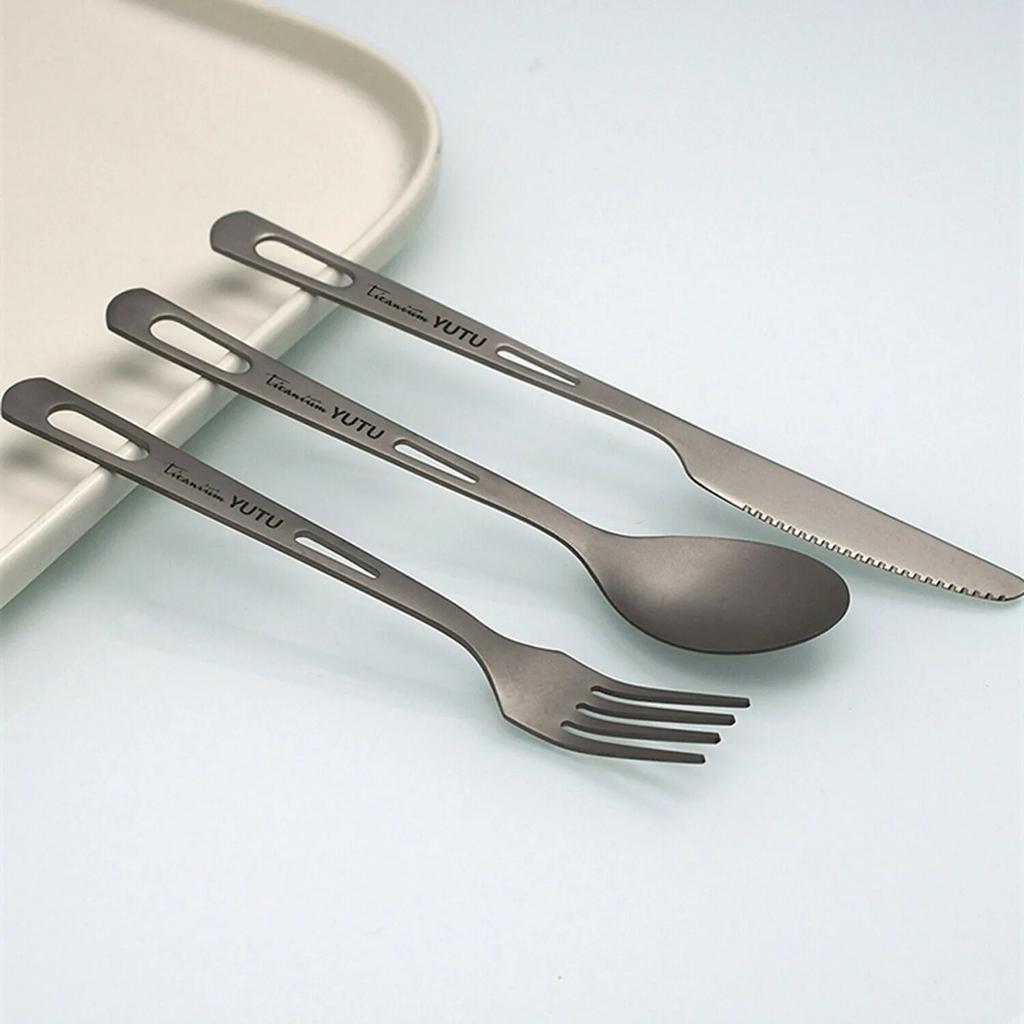 Набор посуды из чистого титана, бытовой матовый нож и вилка, ложка, палочки для еды, портативный набор ножей для путешествий и кемпинга