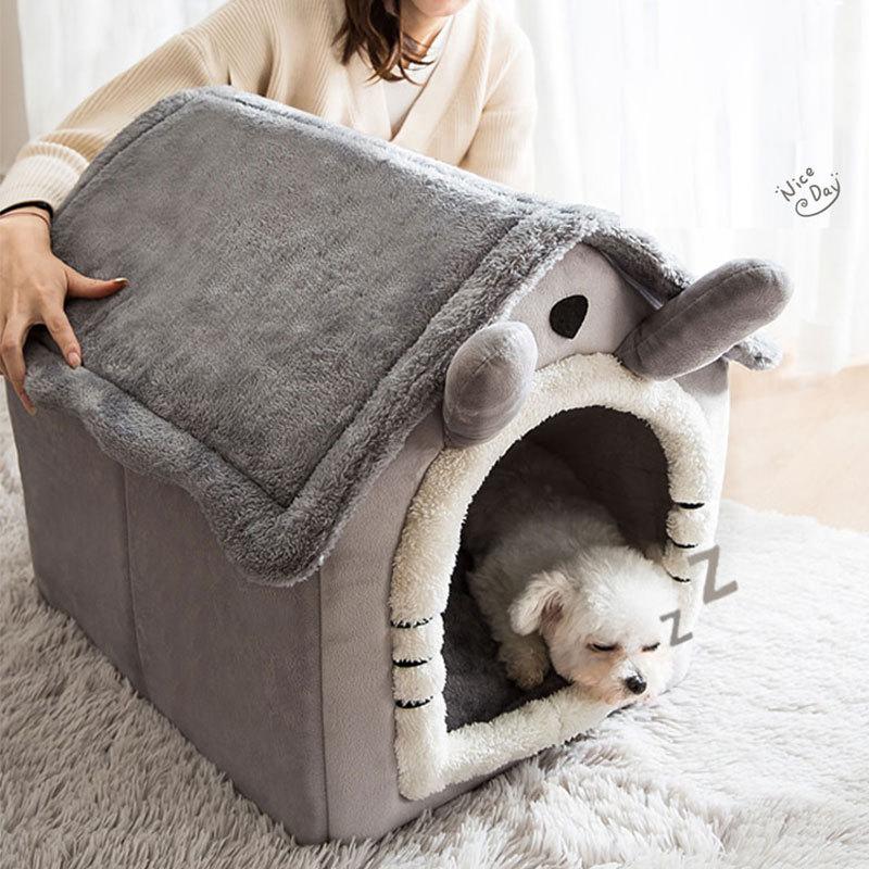 Домик для собак Питомник Мягкая кровать для домашних животных Маленькая палатка для кошек Крытая закрытая теплая плюшевая корзина для сна со съемной подушкой Товары для домашних животных