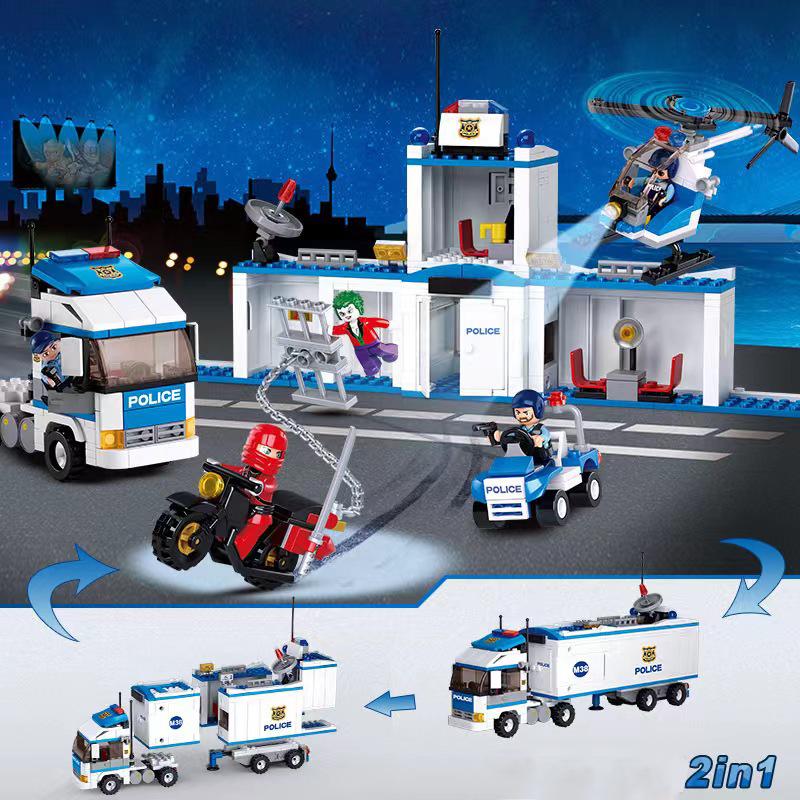2 в 1 трансформируемая городская полиция, 572 шт., игрушечные блоки, кирпичи, мобильный полицейский командный пункт, подарки на день рождения для мальчиков и девочек