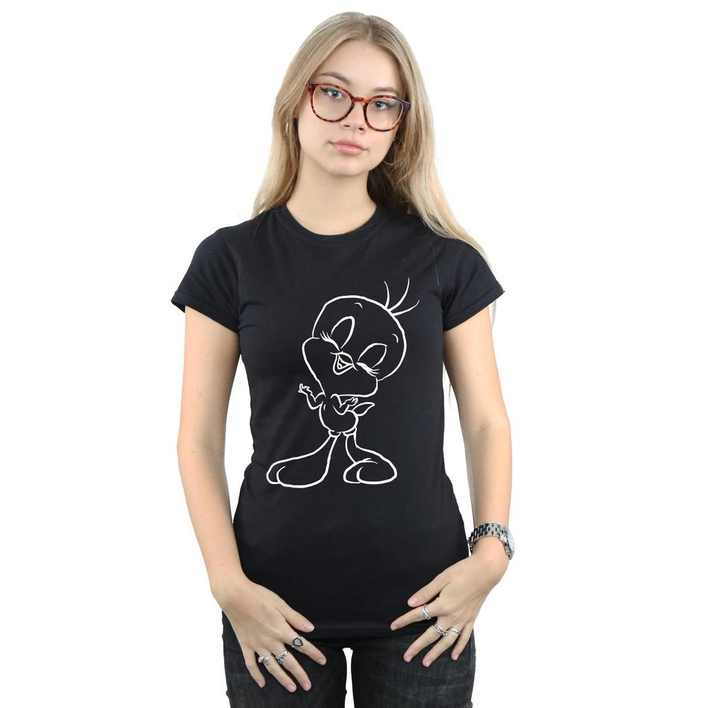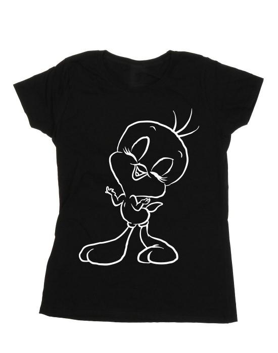 Looney Tunes Женская/женская хлопковая футболка Tweety Pie Outline