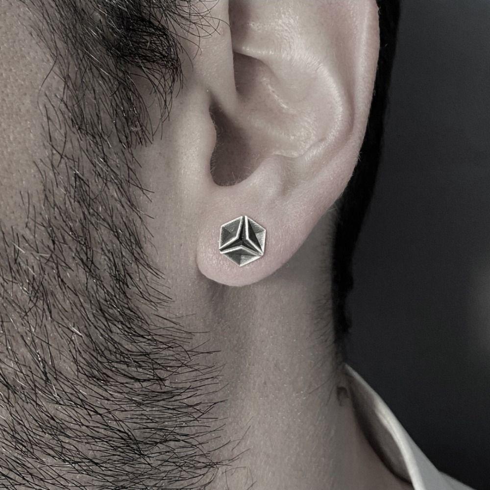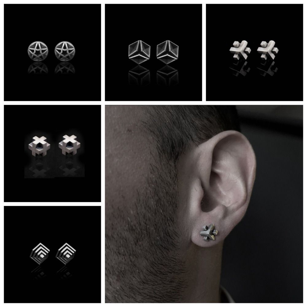 Стереоскопические мужские серьги в стиле панк, уличная одежда, серьги в стиле хип-хоп, мужские серьги-гвоздики с геометрическим рисунком в стиле панк