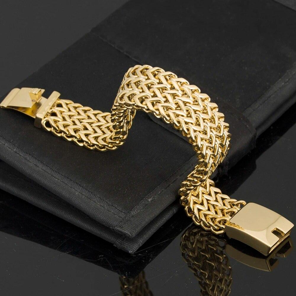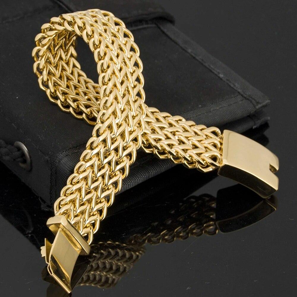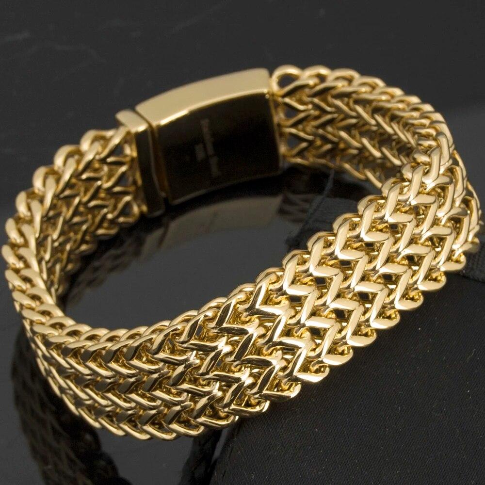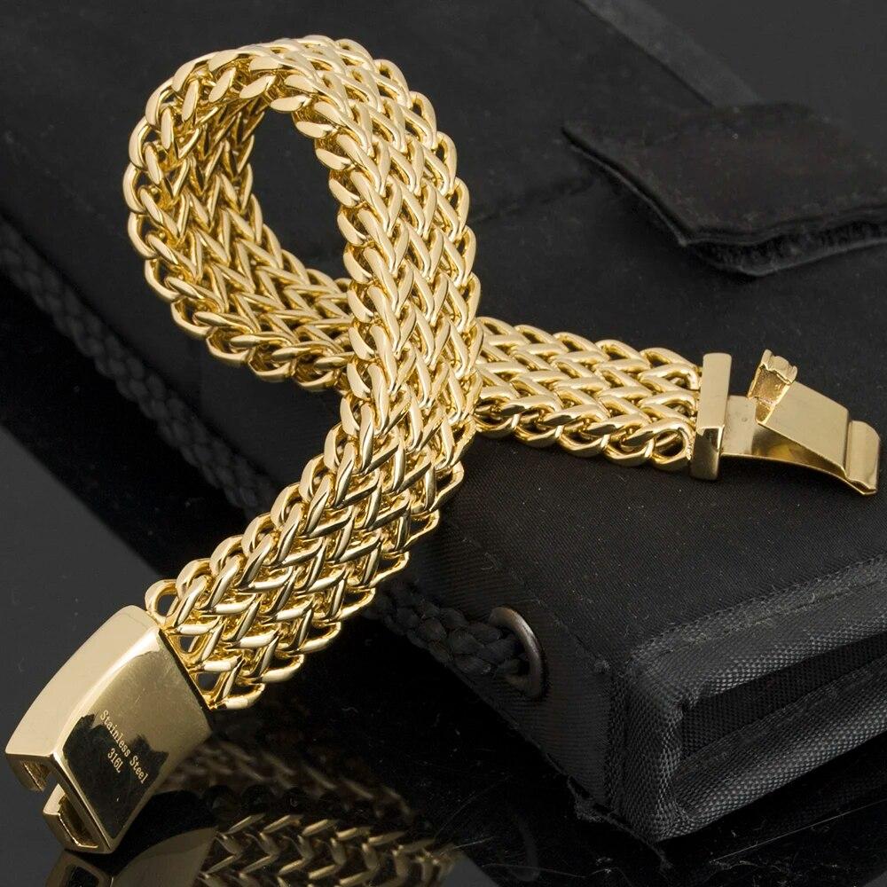 Роскошный браслет цвета желтого золота для мужчин шириной 18 мм из нержавеющей стали, мужские браслеты на руку, металлические ювелирные изделия, подарки для парня и парня