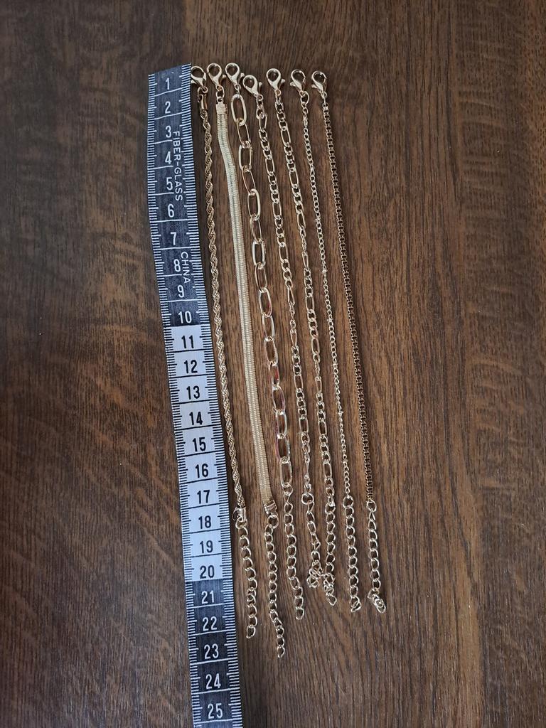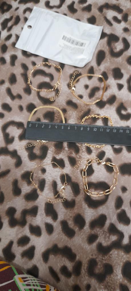 Заказ пришел в срок. Упаковано хорошо. Товар соответствует фото. Правда на той цепоске что с маленькими бусинами - бусины отсутствуют, вместо них какие то узелки, как будто цепочка спутана или скручена. Остальное норм. Браслет желтого цвета ( желтое золото -условно). Норм , носить можно. Расчитан на узкое запястье 18 см и плюс 5 см цепочка, т.е. реально 23 см. Как будет носиться еще не знаю.Спасибо Джум!