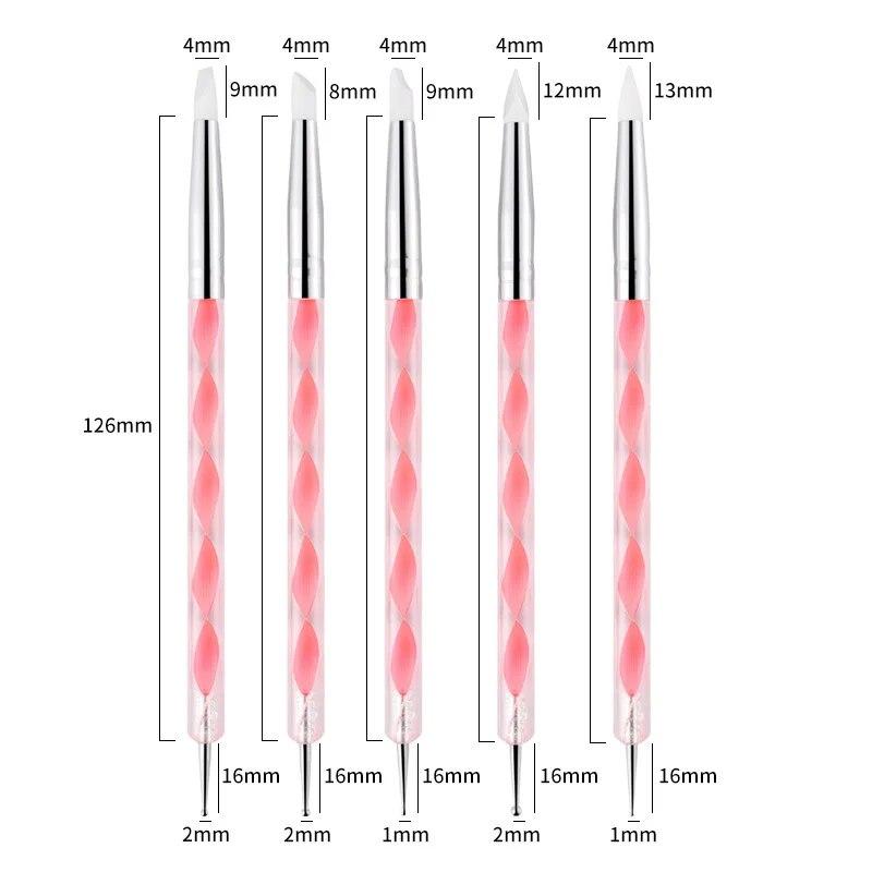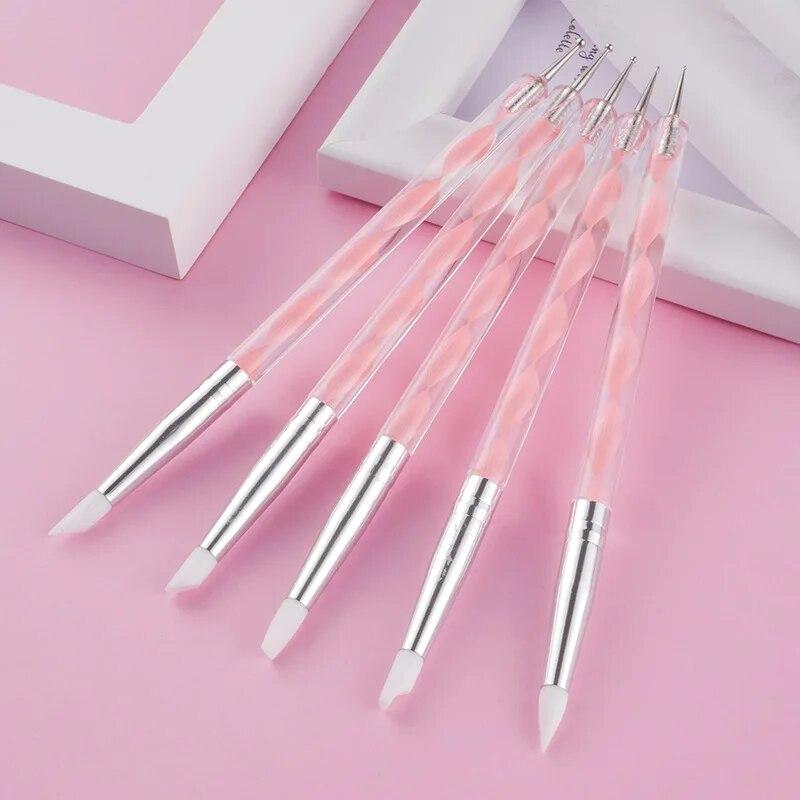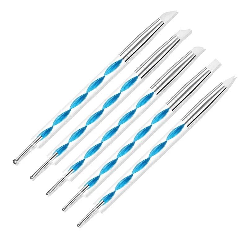 5 шт. двусторонние силиконовые инструменты для расстановки головок, смешанные размеры, тиснение, ручка для рисования, маникюрные инструменты