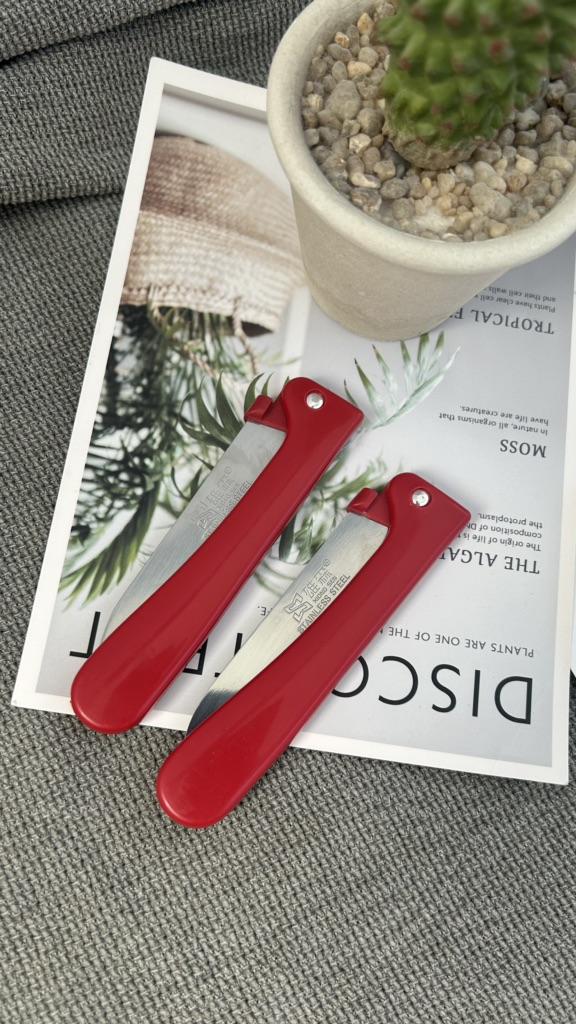 Карманные ножички Заказывала для выездов на природу. Очень удобная вещь для того что бы брать с собой. В комплекте идет 2 шт. Ручка пластиковая,сделана качественно. Ножик задвигается и вынимается без проблем. Лезвие тонкое,заточено очень остро. Выполнено из нержавеющей стали. По размеру : раскрытый 23 см, лезвие 9,5 см, ручка 13,5 см. Я очень довольна, один всегда в машине лежит. Доставка 3 недели до РБ.