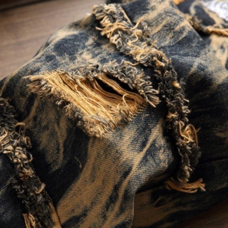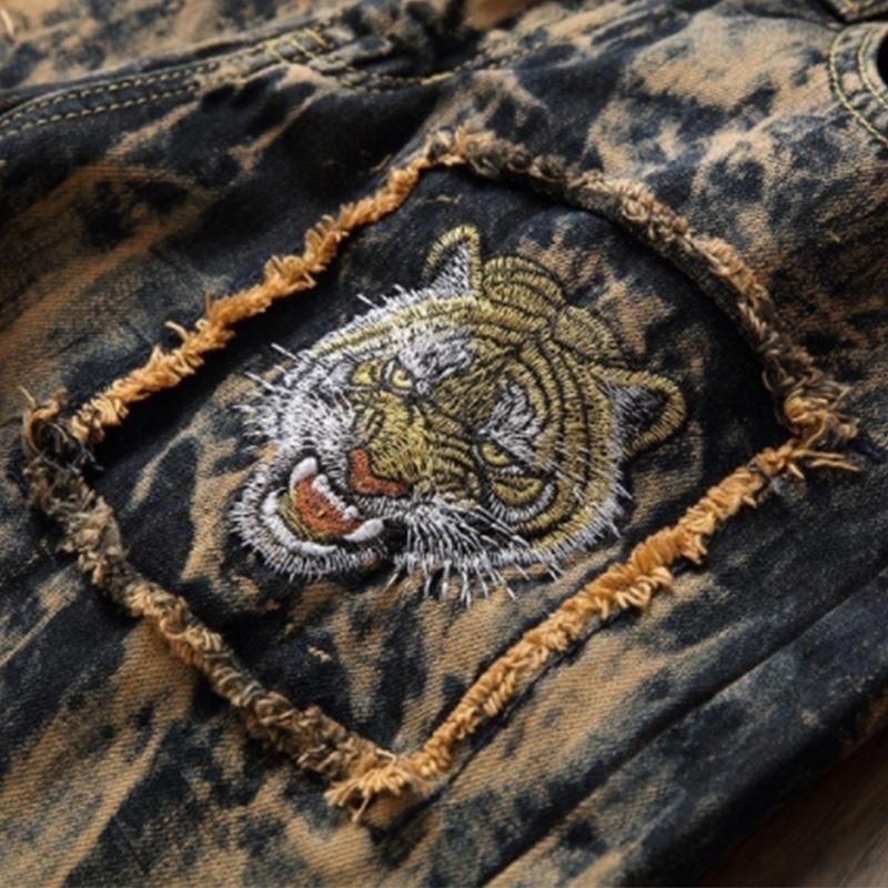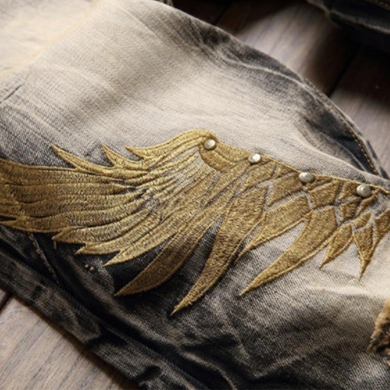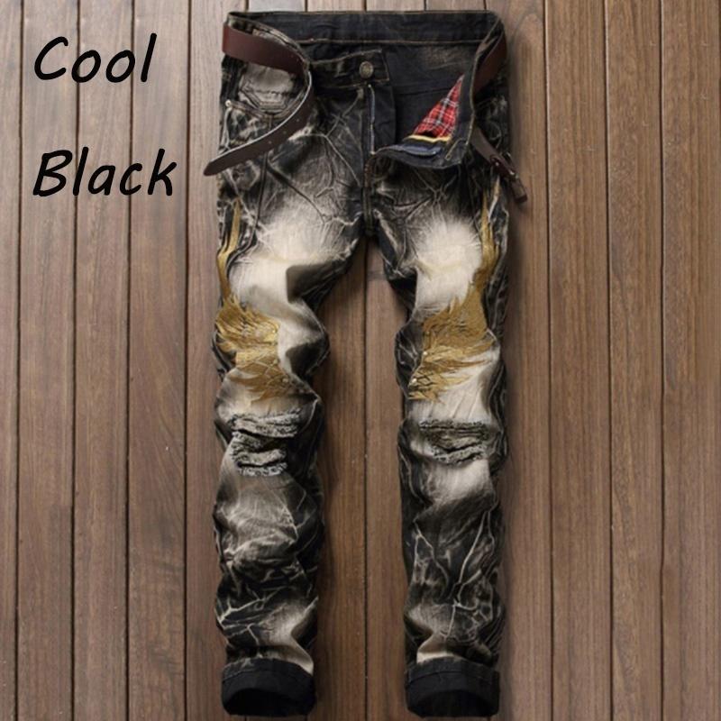 Мужские прямые джинсы в стиле ретро в стиле панк, рваные джинсовые брюки на молнии для мотоциклистов в стиле хип-хоп