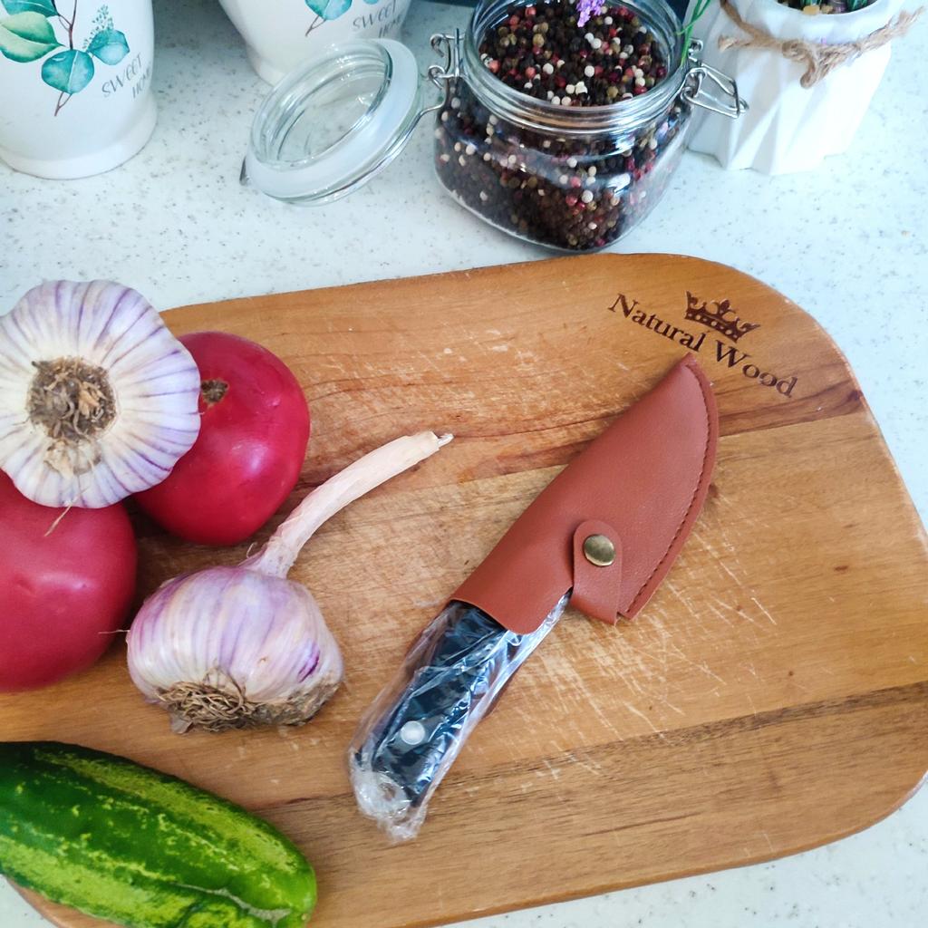 🔪 Нож кухонный в чехле из нержавеющей стали🔪 Универсальный и надежный кухонный нож из первоклассной стали с кобурой и открывашкой – без сомнения пригодится во время походов и "тихой охоты", а также дома для приготовления различных блюд. Нож оснащенный удобной ручкой, обеспечивает надежный захват, что делает нож туристический невероятно удобным в использовании. Также изделие оснащено кольцом-открывашкой для бутылок. Нож имеет цельный корпус с лезвием, которое изготовлено из высокоуглеродистой нержавеющей стали. Такая сталь очень долговечна и обладает стойкостью к коррозии. В общем и целом я довольна покупкой. Единственное,чехол не совсем то,чего хотелось бы. К покупке смело рекомендую👍
