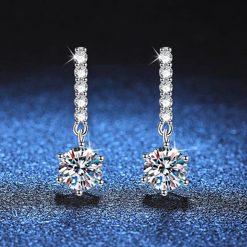 Сертифицированные серьги-капли с муассанитом D цвета 1,0 карата для женщин, 100% стерлинговое серебро 925 пробы, подвеска с шестью когтями, сверкающие ювелирные изделия