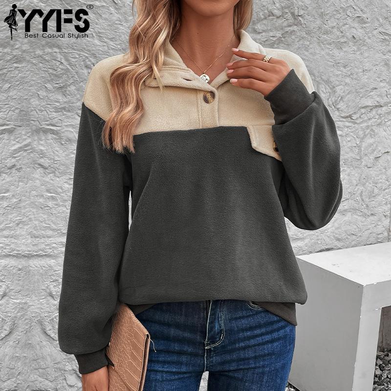 YYFS Женские модные повседневные свитера с воротником-стойкой и цветным принтом, осень-зима с длинными рукавами