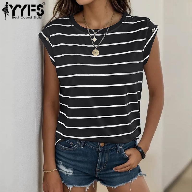 YYFS женские модные повседневные летние весенние полосатые футболки и топы без рукавов с круглым вырезом и круглым вырезом — купить товар онлайн с бесплатной доставкой по всему миру!