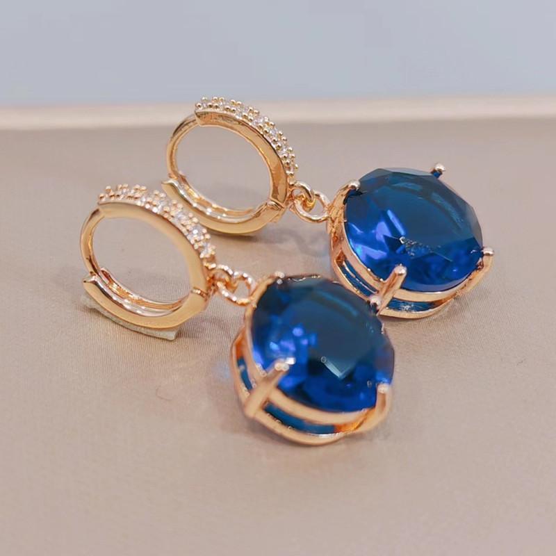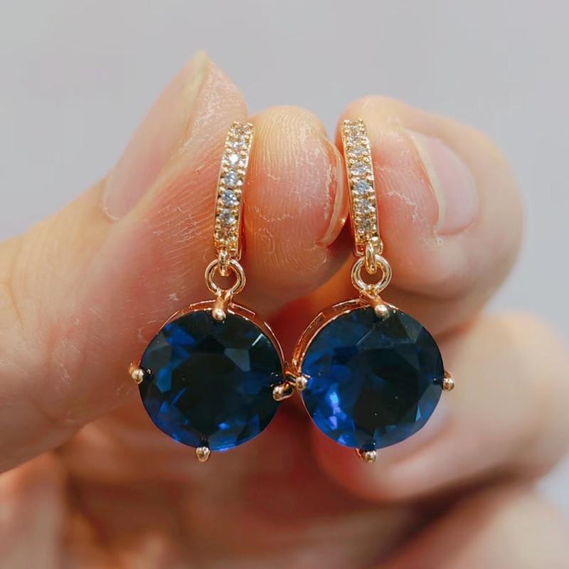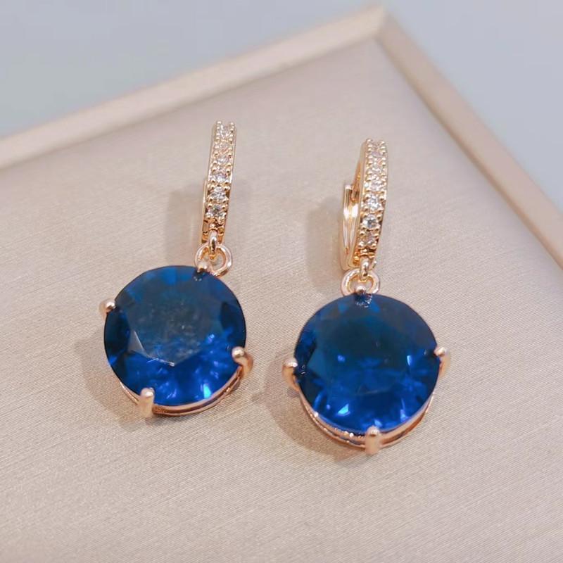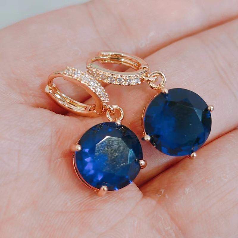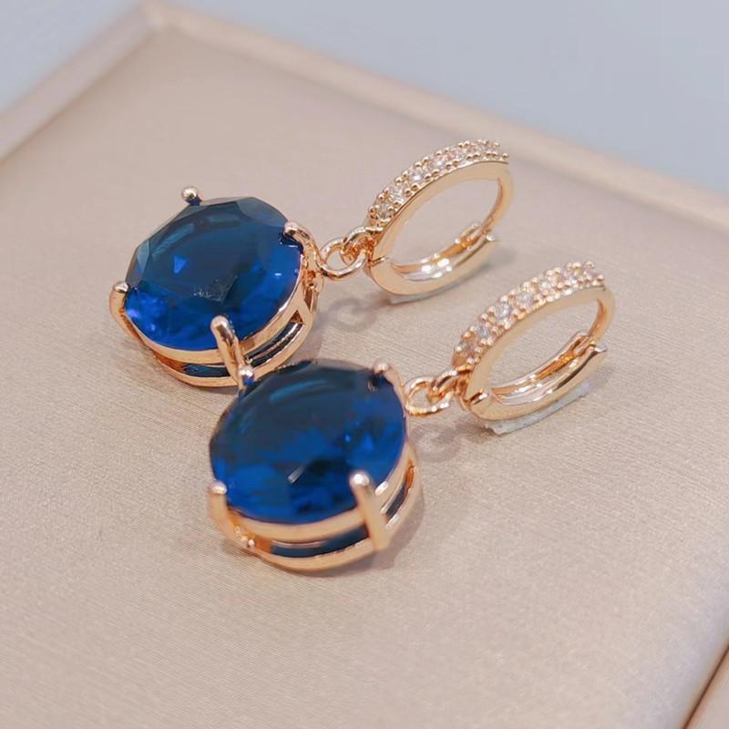 Корейские модные серьги-капли с синим цирконием для женщин, модные серьги золотого цвета, ювелирные изделия, аксессуары для вечеринок