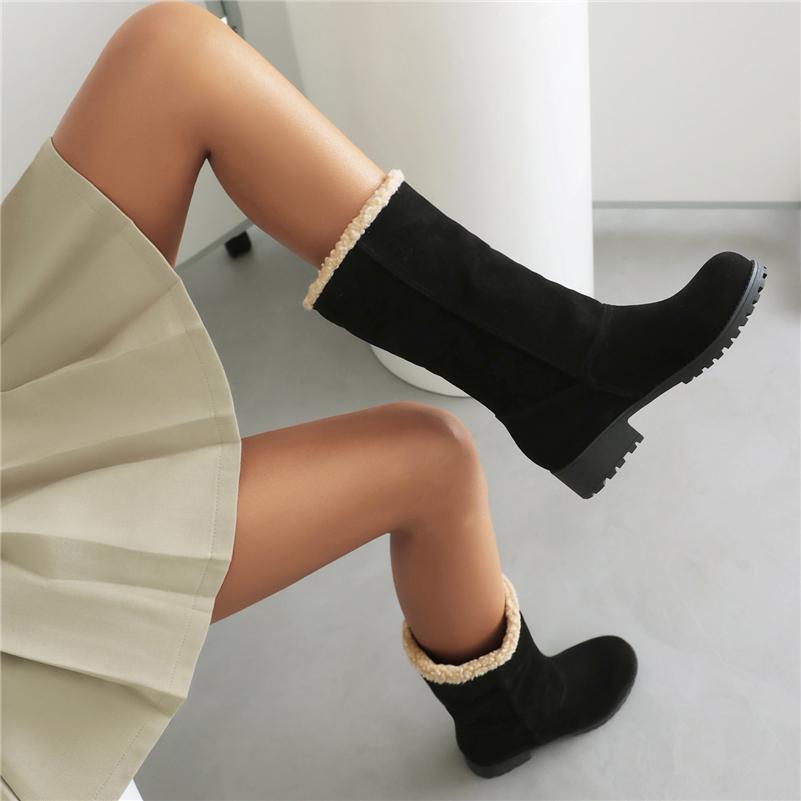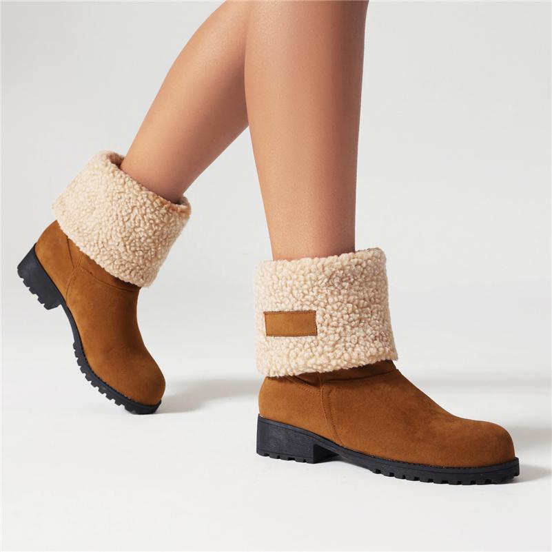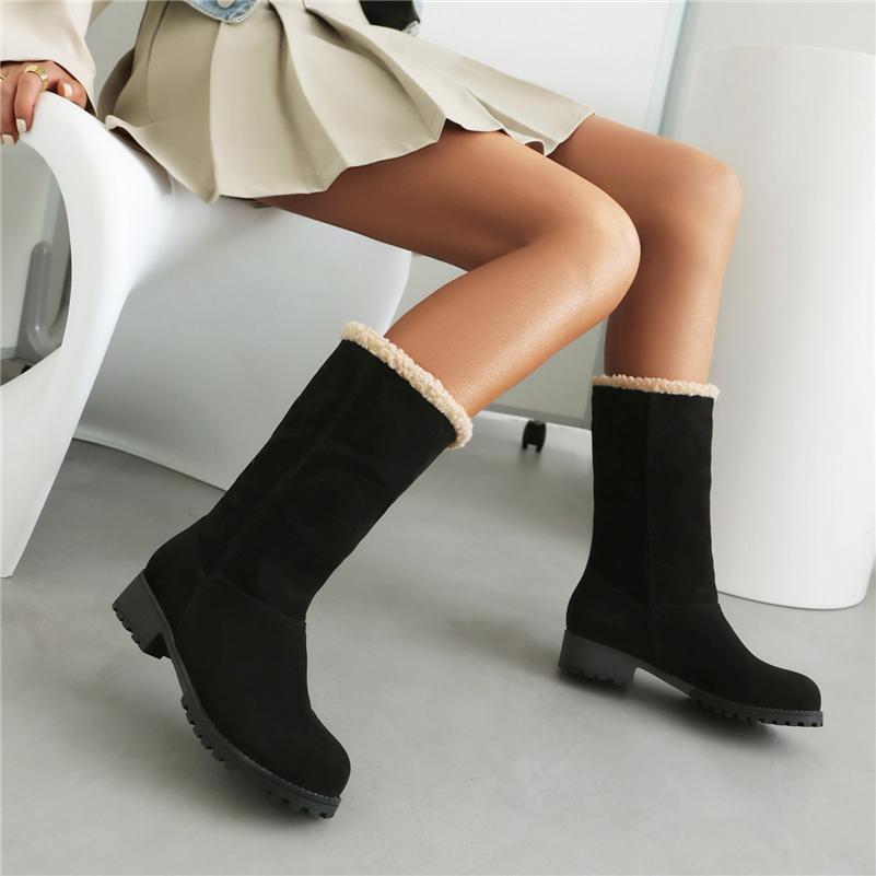 Meotina Женские ботильоны, зимние ботинки на меху с круглым носком и толстым средним каблуком, женская модная обувь в лаконичном дизайне, зимняя черная верблюжья обувь 43