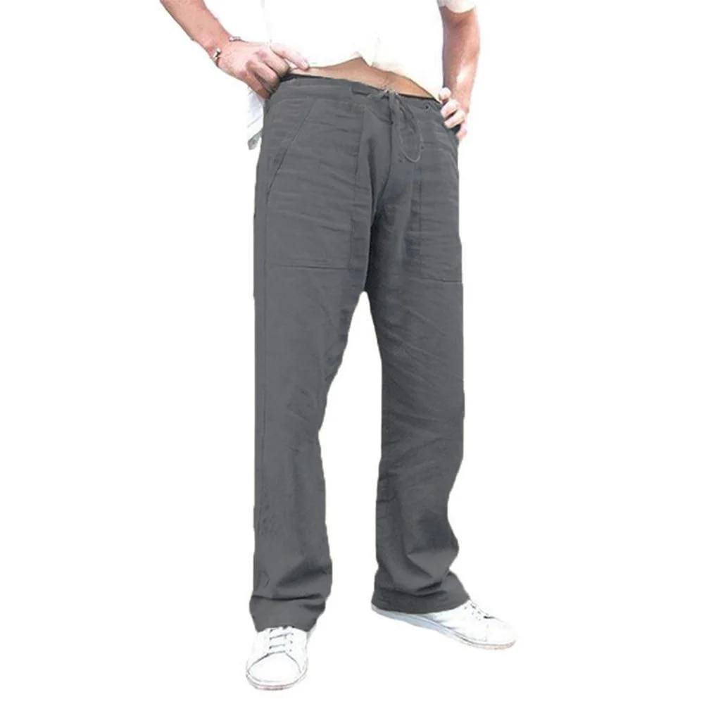 Мужские брюки из хлопка и льна, прямые пляжные брюки, мужские повседневные брюки для бега на весну и лето с дышащей талией, брюки для бега для фитнеса, уличная одежда