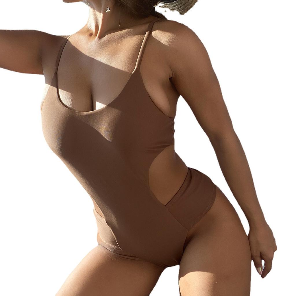 Женский купальник, сплошной цвет, цельный, с высокой талией, сексуальный купальник бикини для женщин, пляжная одежда, купальные костюмы