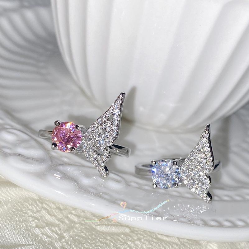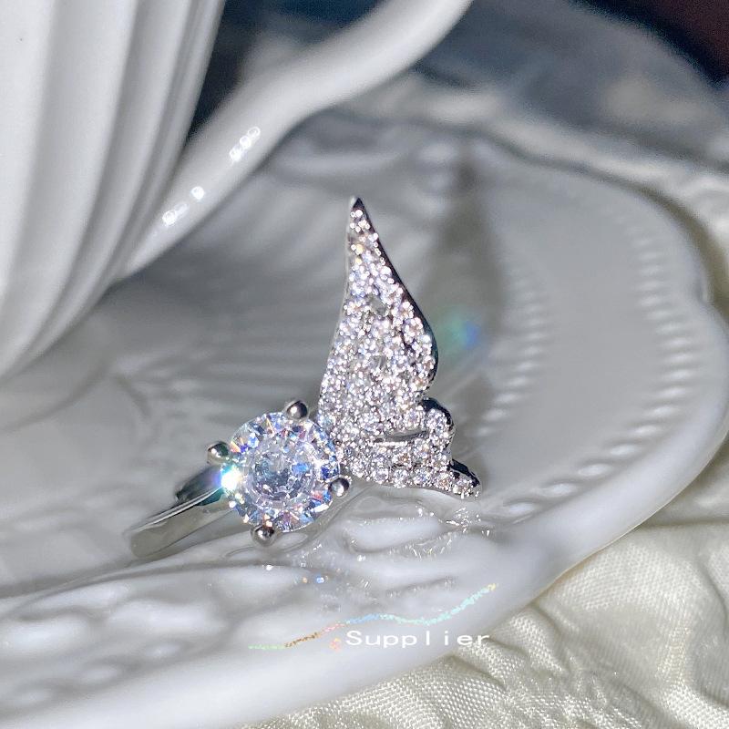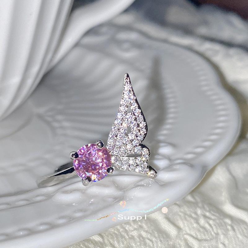 Серебристо-розовое кольцо с драгоценными камнями для женщин, кольцо с топазом и крыльями ангела, ювелирные изделия в стиле INS