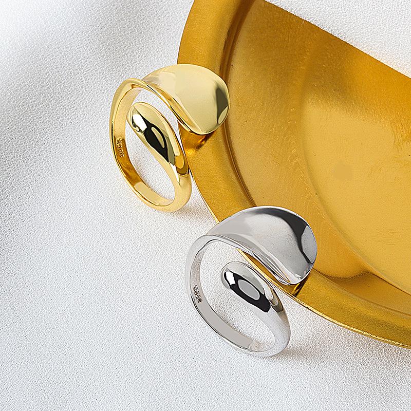 S925 Серебро Модные Гладкие Кольца Для Женщин Пара Винтаж Золото Серебро Геометрические Свадебные Украшения Ручной Работы