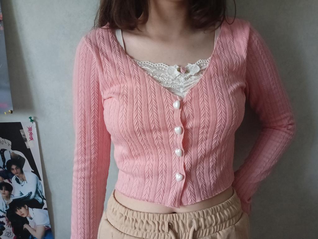 Французская девушка с v-образным вырезом, искусственная двухсекционная строчка, кружевной внутренний вязаный кардиган, футболка, женский короткий топ, осень — купить товар онлайн с бесплатной доставкой по всему миру!